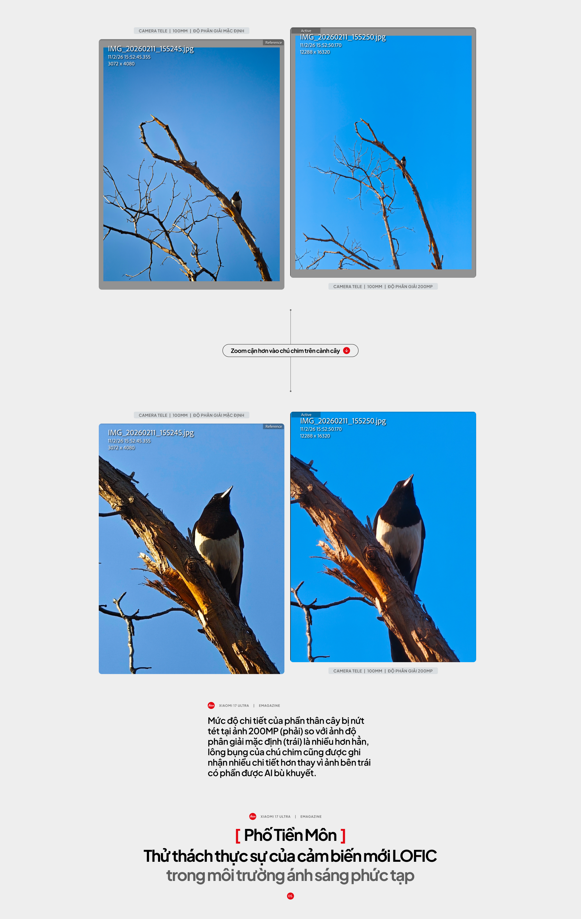 Quan trọng hơn, độ phân giải cao mang lại sự linh hoạt trong việc crop. Chắc hẳn bạn cũng biết rằng khi chụp ảnh, không phải lúc nào bạn cũng có thể đứng ở vị trí lý tưởng. Có những khoảnh khắc diễn ra nhanh, ở khoảng cách xa, và việc crop sau khi chụp trở thành một phần của quá trình sáng tạo. Với ảnh 200MP từ Xiaomi 17 Ultra, việc crop sâu vẫn giữ được độ chi tiết đủ cao để ảnh có thể sử dụng mà không tạo cảm giác bị suy giảm chất lượng rõ rệt. Đây là một lợi thế thực tế, không chỉ mang tính kỹ thuật mà còn mang tính sáng tạo.