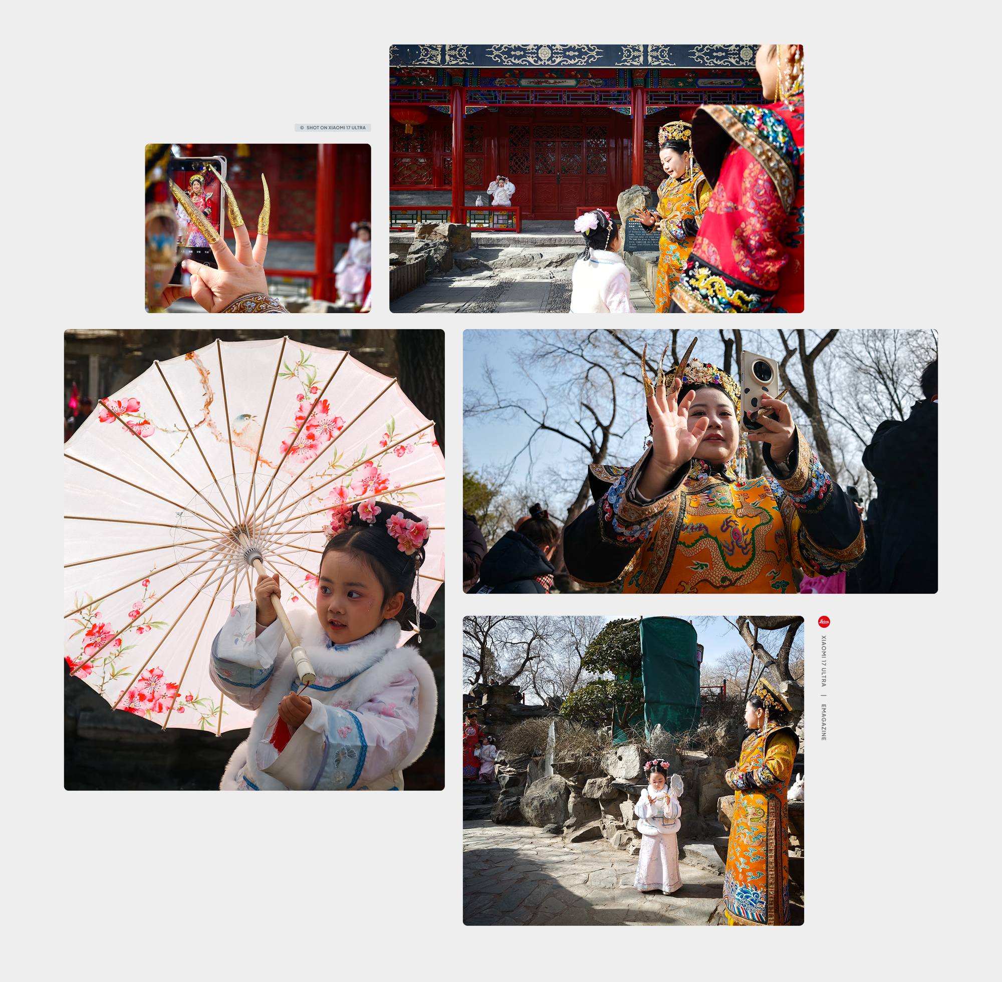 Phía sau, bức tường đỏ đặc trưng của Tử Cấm Thành trở thành phông nền lý tưởng, vừa tạo tương phản mạnh, vừa tôn lên chủ thể theo một cách rất cổ điển và giàu tính biểu tượng. Khoảnh khắc ấy diễn ra nhanh và cũng biến mất nhanh, nhưng đủ để tôi phản xạ gần như theo bản năng, đưa chiếc Xiaomi 17 Ultra lên và bấm máy; khi xem lại, tôi nhận ra máy đã tái hiện trọn vẹn cả ánh sáng lẫn cảm xúc của cảnh tượng đó, từ kết cấu bức tường, hoa văn trang phục cho đến chiếc bóng lá mờ nhẹ trên gương mặt, với màu sắc trung thực và dải tương phản động đủ rộng để cân bằng giữa vùng nắng gắt và những khoảng tối, khiến bức ảnh gần như hoàn chỉnh ngay từ lần chụp đầu tiên mà không cần thêm bất kỳ can thiệp hậu kỳ nào.