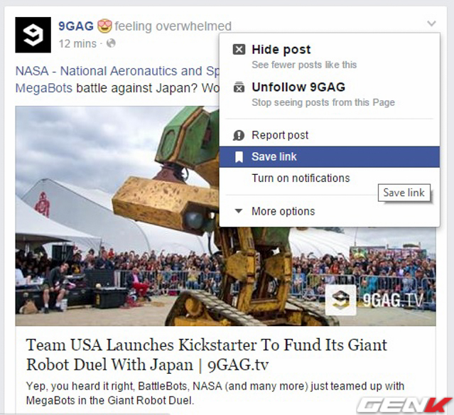Hàng ngày có rất nhiều tin tức, bài nhạc, video được chia sẻ từ bạn bè, và không phải lúc nào bạn cũng có đủ thời gian để xem hết. Thật may Facebook đã bổ sung tính năng Save Link.
