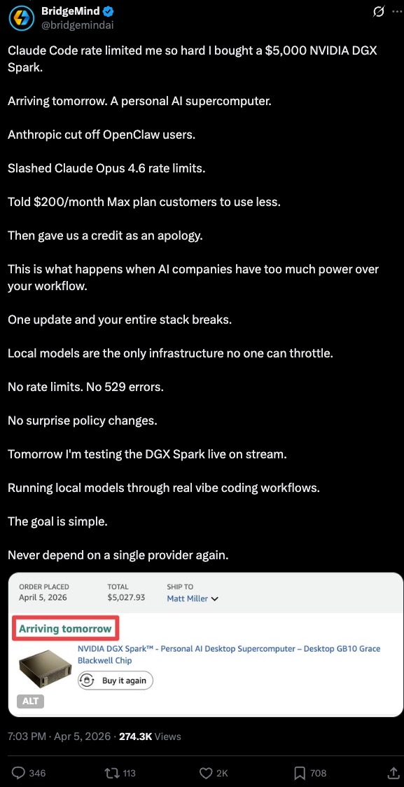Từ một thay đổi chính sách, nhiều workflow AI quen thuộc bỗng bị đảo lộn. Và với một developer, giải pháp không phải là trả thêm tiền, mà là chi 5.000 USD để “thoát” khỏi cloud.