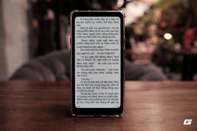 Lớp kính phủ bên ngoài cũng là một điểm đáng giá. Với kính cường lực ion siêu trong kết hợp công nghệ khắc nano, màn hình cho cảm giác “trong” hơn, đồng thời giảm bám vân tay và hạn chế chói tốt hơn khi sử dụng ngoài trời. Đây là yếu tố quan trọng với những ai thường xuyên đọc sách ở quán cà phê hoặc khi di chuyển.