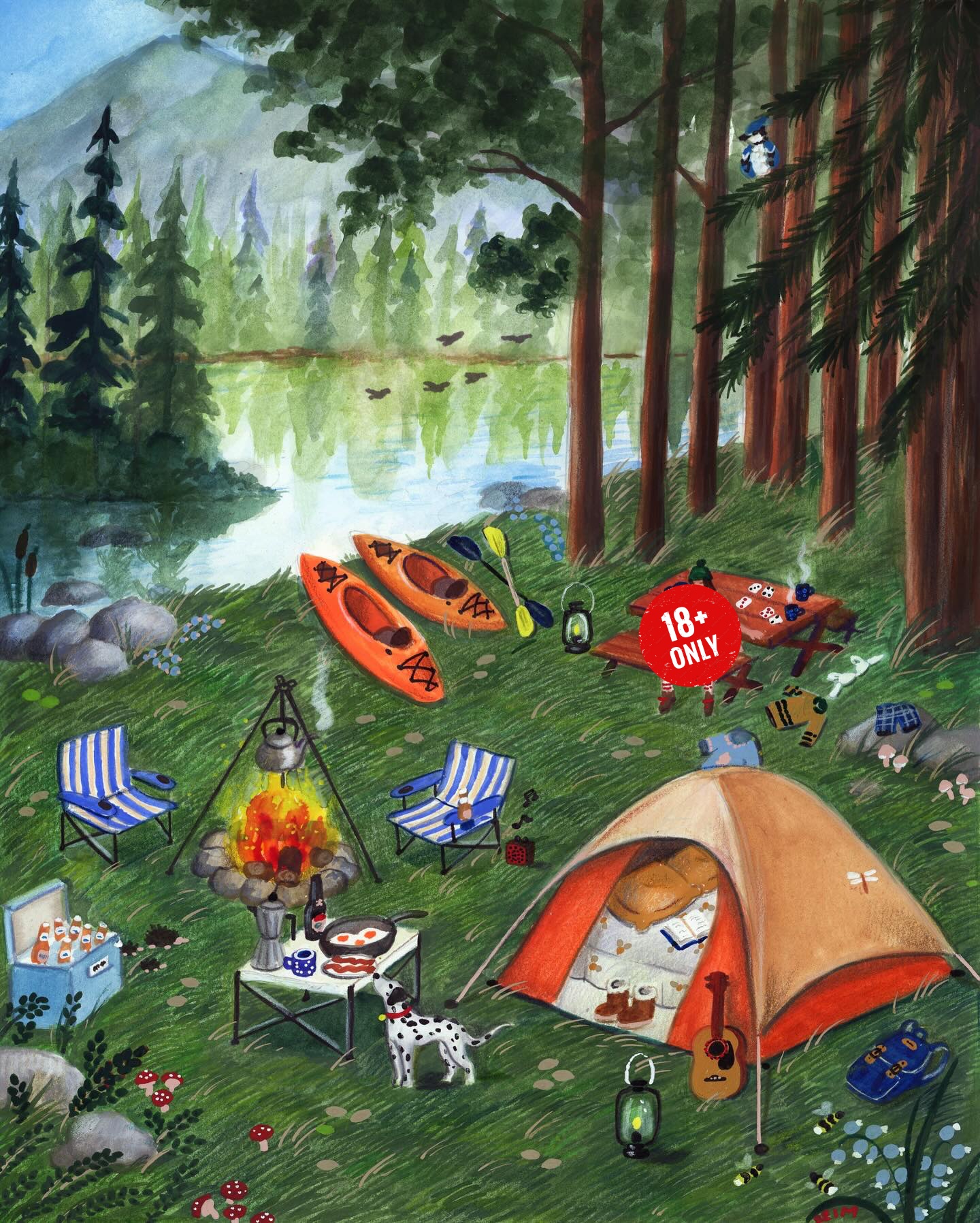 Nhưng sang ảnh thứ hai, mọi thứ bắt đầu lệch đi. Những bức tranh thiên nhiên lãng mạn như rừng, đồng cỏ, khu cắm trại… đi kèm câu trả lời kiểu “Bình yên là đủ”, “Ở đâu cũng được”… Nghe thì tích cực, nhưng ẩn bên trong lại là các chi tiết 18+ nhạy cảm, phải nhìn kỹ mới nhận ra.