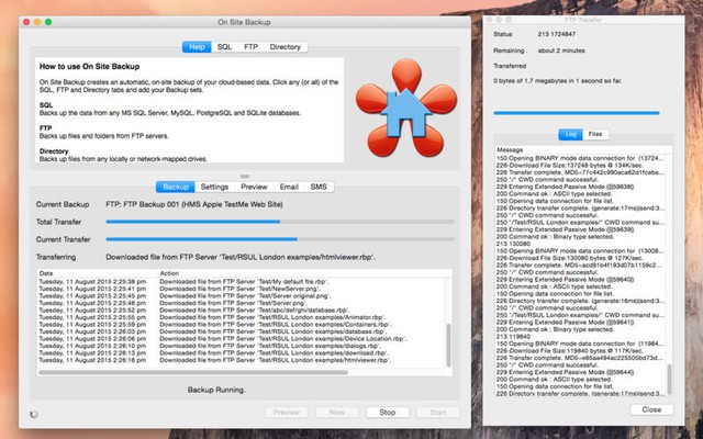 Bạn đang sở hữu một trang web và muốn back up toàn bộ dữ liệu trên đấy để đảm bảo an toàn trong trường hợp gặp sự cố? Đừng lo lắng vì giờ đây chuyện đó sẽ thật dễ dàng với On Site Backup. Phần mềm sẽ giúp bạn kết nối với cơ sở dữ liệu của trang web và tiến hành back up toàn bộ dữ liệu ở trên đó về chiếc máy Mac của bạn.