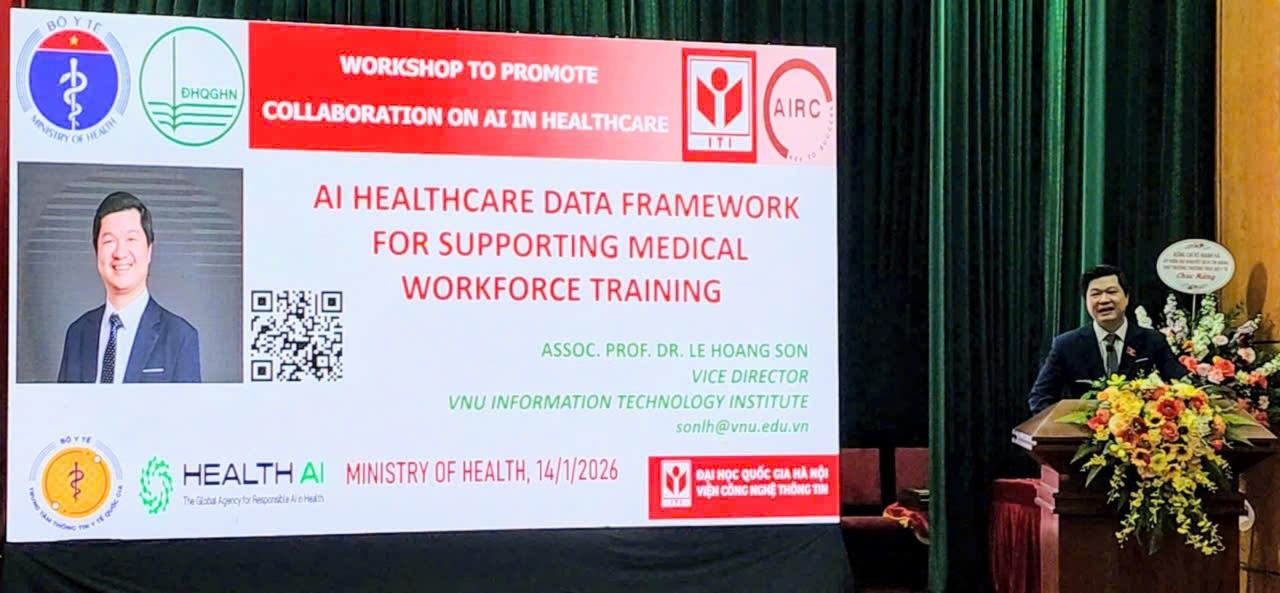 Tại hội thảo, PGS. TS. Lê Hoàng Sơn - Phó Viện trưởng Viện Công nghệ thông tin kiêm Giám đốc AIRC đã có bài tham luận quan trọng về "Khung dữ liệu AI y tế Việt Nam giai đoạn 2026 - 2030".
