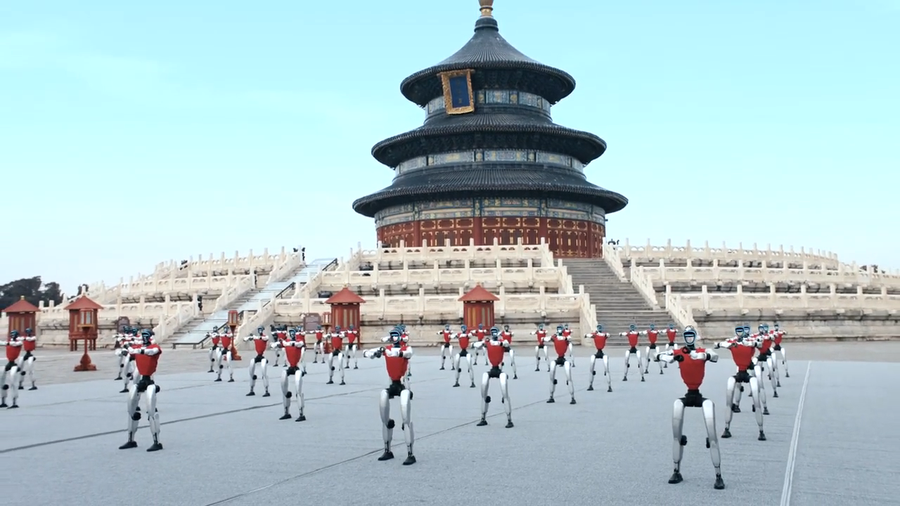 Một màn trình diễn đặc biệt đã diễn ra tại Bắc Kinh khi hàng chục robot hình người G1 của công ty Unitree Robotics thực hiện các động tác võ thuật đồng bộ trước ngôi đền Thiên Đàn.