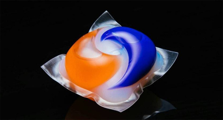 Viên giặt chứa hóa chất tẩy rửa đậm đặc.