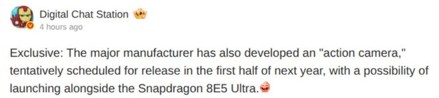 Bên cạnh smartphone, vivo dường như còn đang mở rộng sang một mảng sản phẩm hoàn toàn mới. Theo thông tin từ Digital Chat Station trên Weibo, hãng đang phát triển một mẫu camera hành động độc lập, dự kiến ra mắt trong nửa đầu năm 2026. Khả năng cao sản phẩm này sẽ được giới thiệu cùng thời điểm với vivo X300 Ultra, dù hiện chưa có xác nhận chính thức.