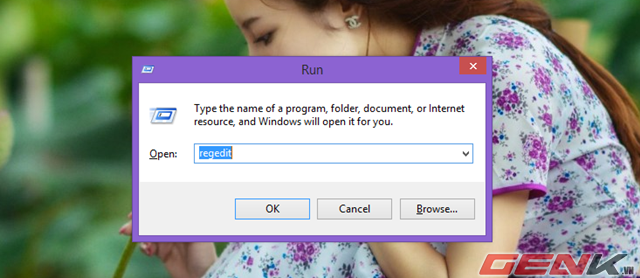 Gọi hộp thoại Run bằng tổ hợp phím WIN R và nhập vào lệnh “regedit”, sau đó nhấn ENTER để gọi hộp thoại Windows Registry Editor.