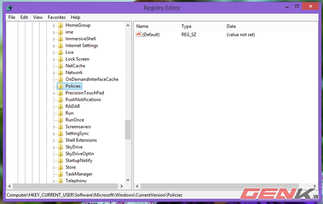 HKEY_CURRENT_USER\Software\Microsoft\Windows\CurrentVersion\Policies