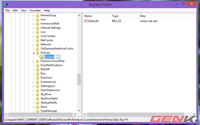 Đặt tên cho khóa mới này là “System”, sau đó nhấn phím ENTER để lưu lại.