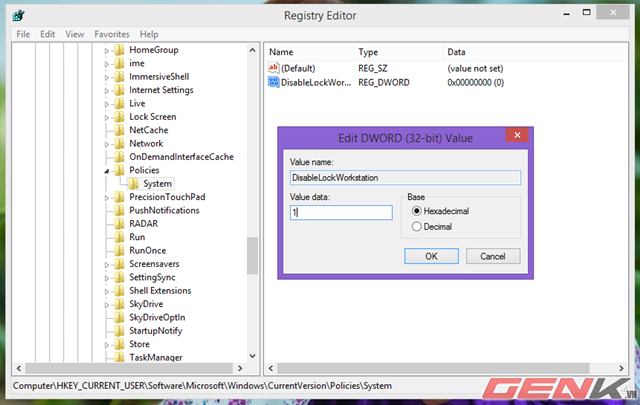 Đặt tên là “DisableLockWorkstation” và thay đổi thiết lập giá trị cho nó là “1” bằng cách nhấn đôi chuột vào nó.