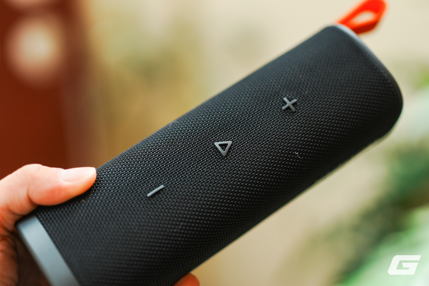 Loa sạc qua cổng USB-C với công suất khoảng 15W, thời gian sạc đầy gần 3 giờ. Có thể vừa sạc vừa phát nhạc khi dùng trong nhà. Cụm nút điều khiển vật lý gồm nguồn, Bluetooth, tăng giảm âm lượng và ghép nối được bố trí rõ ràng trên thân loa. Thao tác trực tiếp, không phụ thuộc ứng dụng, phù hợp với người dùng muốn trải nghiệm đơn giản, bật lên là nghe.