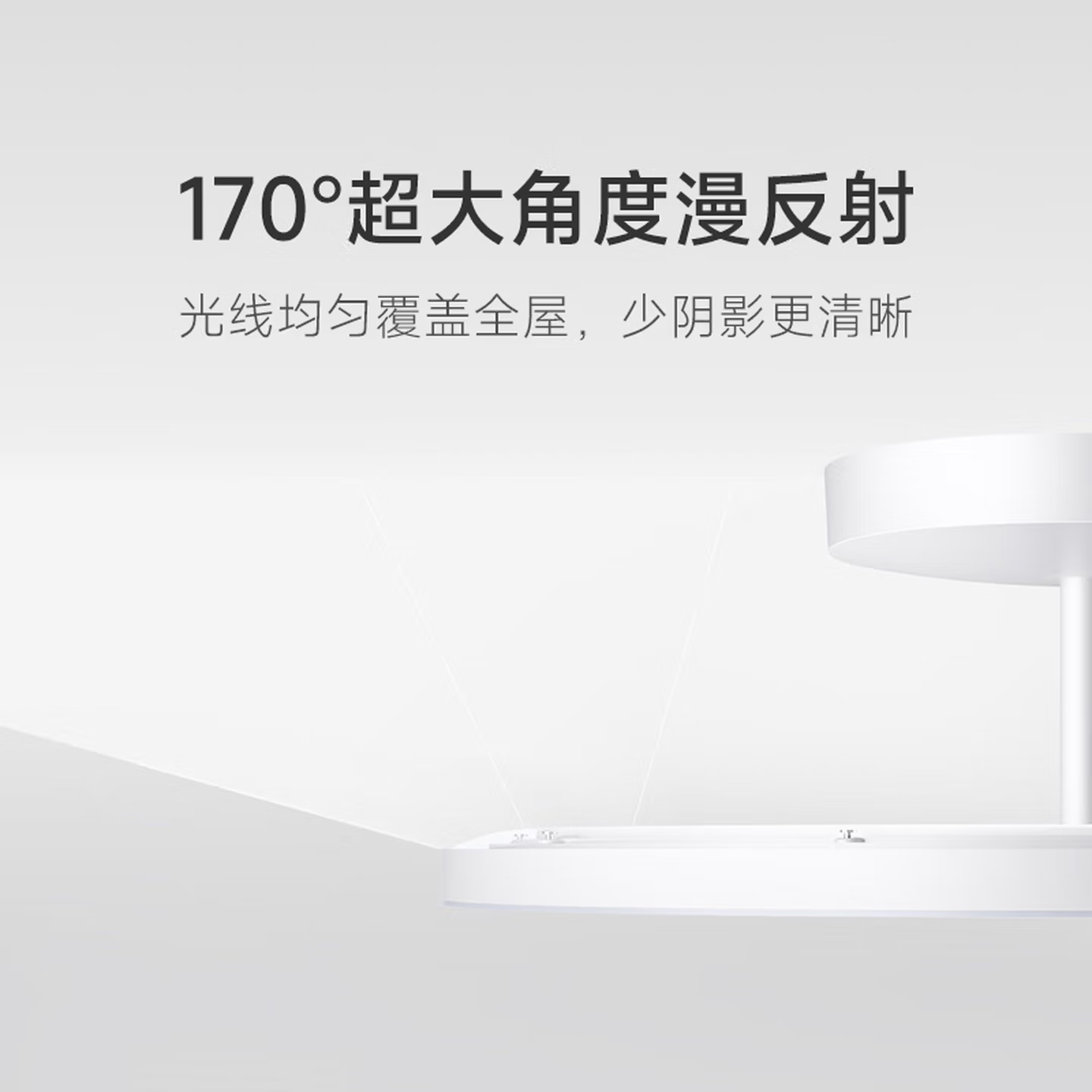 Đèn sử dụng thân mỏng 20cm giúp không gian trần nhìn thoáng. Công nghệ tán xạ rộng tùy chỉnh của Xiaomi cho phép đèn chiếu sáng ở góc rộng 170 độ. Cách chiếu sáng này giúp làm sáng tường, trần và sàn đều hơn so với đèn trần thông thường.