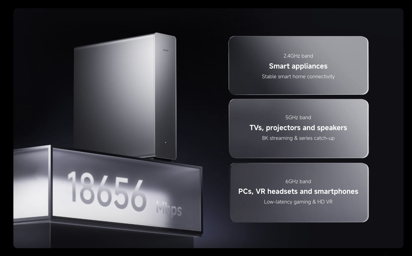 Xiaomi Router BE19000 Pro hỗ trợ tốc độ truyền tải lên tới 18.656Mbps, có cổng 10 Gigabit Ethernet và tích hợp khe M.2 2280 để biến router thành thiết bị lưu trữ mạng ngay tại nhà.