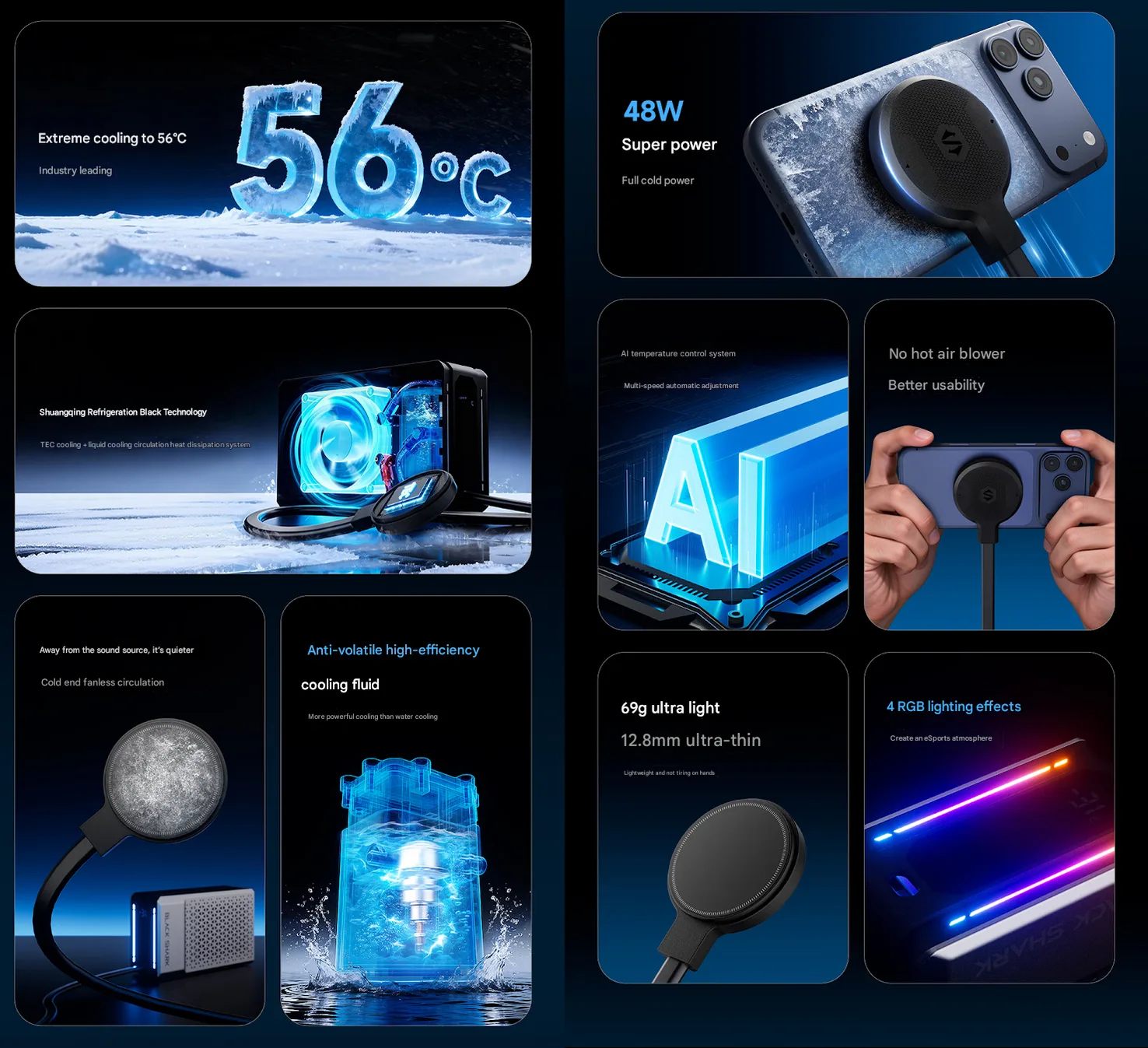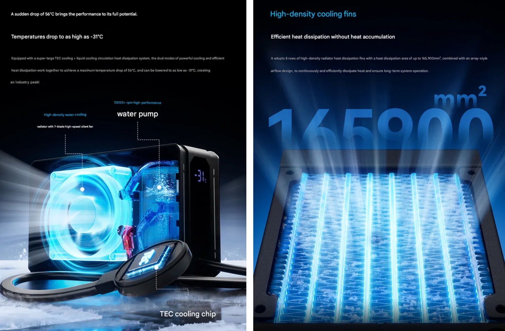 Điểm khác biệt so với các tản nhiệt di động thông thường nằm ở đầu kết nối từ tính dùng để gắn lên điện thoại, tablet hoặc máy chơi game cầm tay. Đầu kết nối này tích hợp chip TEC (thermoelectric cooling) giúp duy trì hiệu quả làm lạnh ổn định, đồng thời có thiết kế tách biệt hoàn toàn thiết bị ra khỏi phần quạt và tản nhiệt, tránh thổi gió trực tiếp vào tay người dùng.